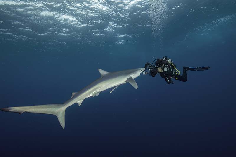 Je ne suis pas biologiste mais j’apprends à mieux connaître les espèces que je photographie, en les observant longuement, en m’appuyant sur l’expérience de guides sur le terrain et en travaillant parfois aux côtés de scientifiques. J’ai commencé à pratiquer la photographie en « terrestre », puis au hasard d’une sortie en mer, je me suis intéressé d’un peu plus près à cet univers sous-marin qui m’était alors inaccessible. Certifications en poche, j’ai fait alors le grand plongeon.