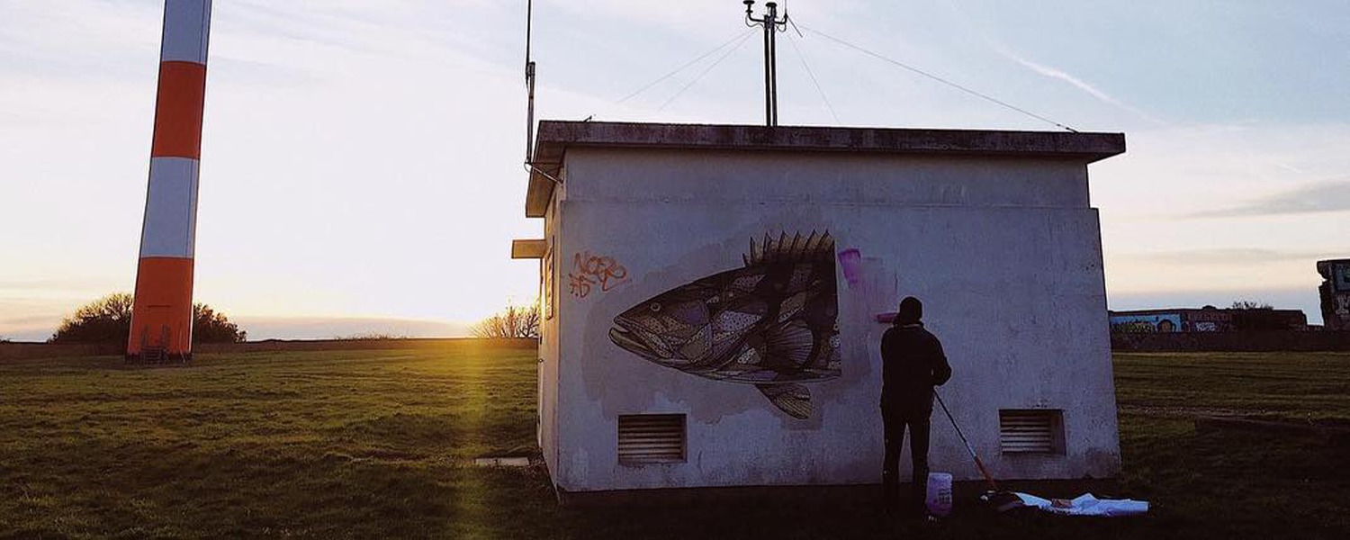 Récemment exposé à la Galerie Hamon au Havre, d’où il est originaire, le street artiste Teuthis (« Calmar » en grec) réalise essentiellement des illustrations d’animaux marins à grande échelle, mêlant un style géométrique singulier et une approche naturaliste.