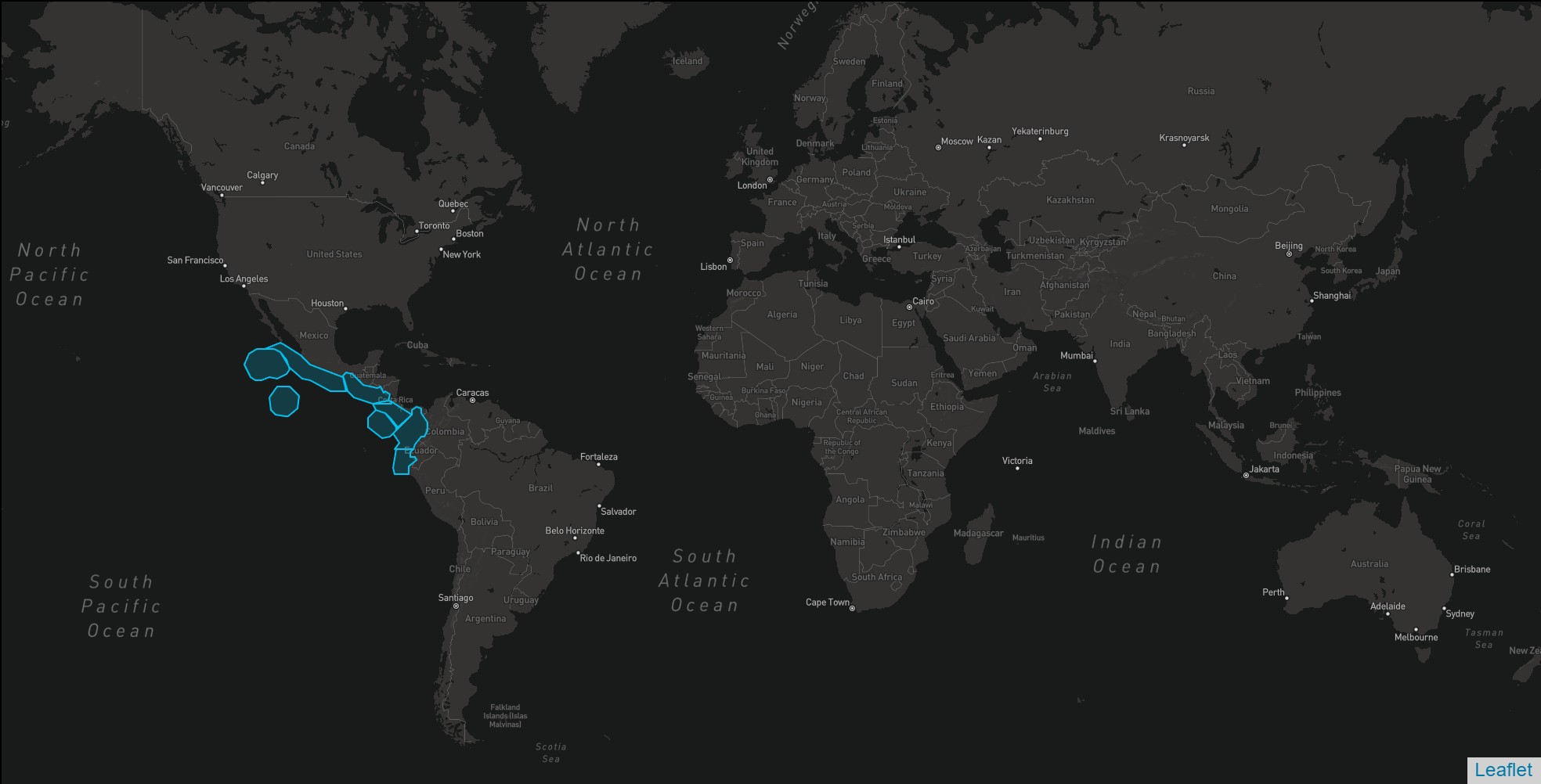 Cette espèce est répertoriée dans l'océan Pacifique tropical et subtropical Est.